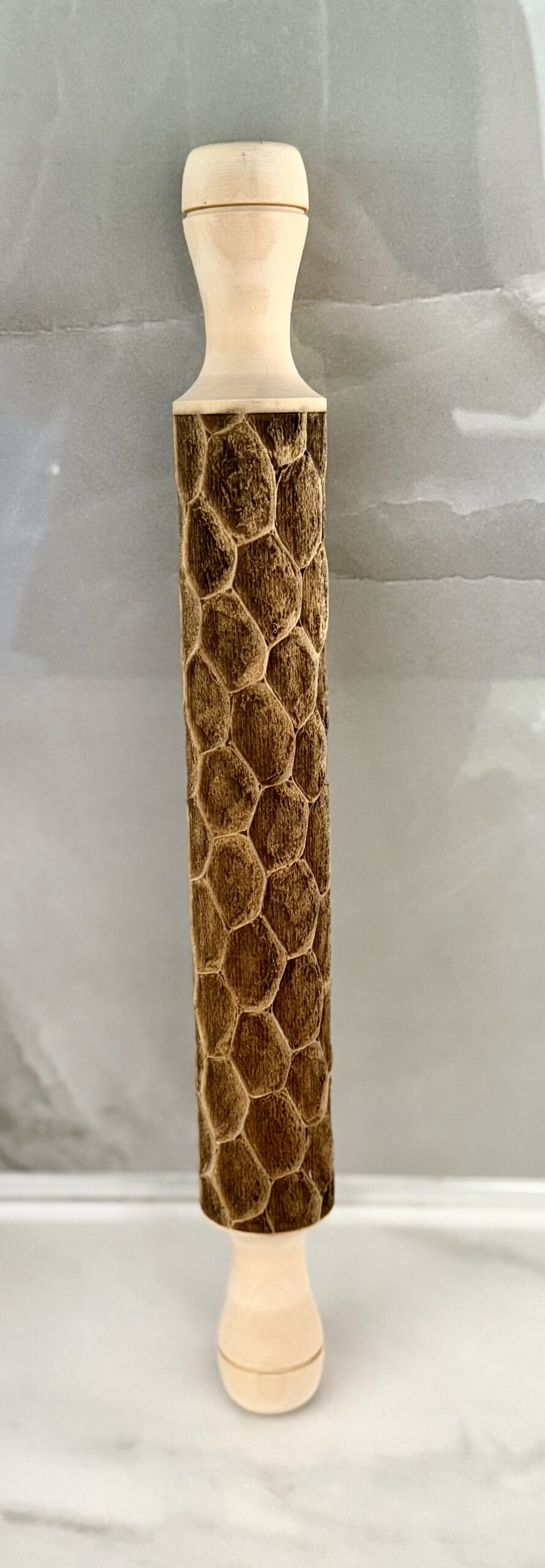 Rodillo de madera de 40 cm, con 25 cm de pura textura . Diseño Piedras. Ideal para usar con pasta de azúcar , masa de galletas, porcelana, etc